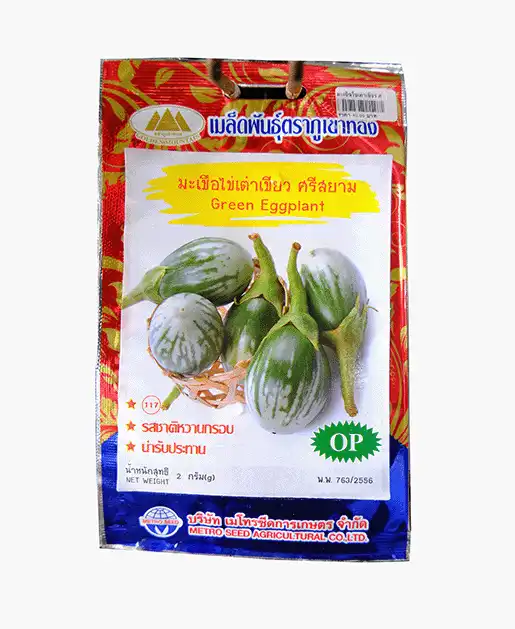 เมล็ดพันธุ์มะเขือไข่เต่าเขียว ศรีสยาม (Green Eggplant) ตราภูเขาทอง พันธุ์ OP แท้ รสชาติหวานกรอบ ผลดกน่ารับประทาน