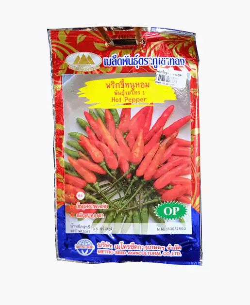 เมล็ดพันธุ์พริกขี้หนูหอม พันธุ์เมโทร 1 ตราภูเขาทอง พริกขี้หนูสวนผลเล็กเกรดพรีเมียมที่ขึ้นชื่อเรื่องความเผ็ดจัดจ้านและกลิ่นหอมเป็นเอกลักษณ์เฉพาะตัว