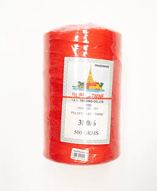 เชือกโปลีหลอด500กรัม สีแดง(เอ็นขึงไล่ระดับ)