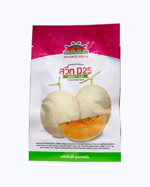 แคนตาลูป สวีท D25 เป็นเมล็ดพันธุ์แคนตาลูปลูกผสม F1 จาก Advance Seeds ที่ได้รับความนิยมสูงในกลุ่มเกษตรกรและผู้ปลูกเชิงการค้า ด้วยจุดเด่นเรื่อง เนื้อสีส้มสวย กลิ่นหอม รสชาติหวานกรอบ ให้ค่าความหวานสูงประมาณ 14–16 บริกซ์ ตอบโจทย์ตลาดผลไม้คุณภาพ
