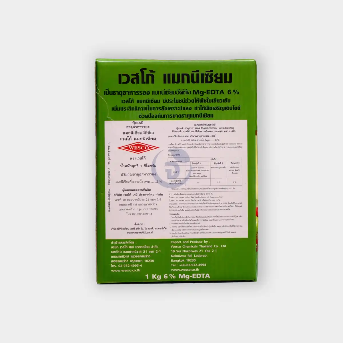 เวสโก้ แมกนีเซียม (Wesco Mg) ธาตุแมกนีเซียม Mg-EDTA 6% ปุ๋ยธาตุอาหารเสริมพืช 1 กก.